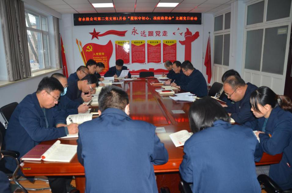 按照市水投公司黨委統(tǒng)一部署要求,第二黨支部2022年1月4日下午組織全體黨員、積極分子、群眾代表開展了“履職守初心、戰(zhàn)疫踐使命”主題黨日活動(dòng),會(huì)議由支部書記吳爭(zhēng)兵主持。