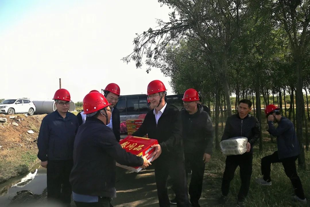 佳節(jié)情意濃,慰問(wèn)暖人心。在慶祝新中國(guó)成立75周年之際,10月1日上午,公司黨委書(shū)記、董事長(zhǎng)薛文兵到常硝渠項(xiàng)目工地開(kāi)展安全帶班檢查并慰問(wèn)一線(xiàn)員工,隨后前往姚暹渠鹽湖段現(xiàn)場(chǎng)了解項(xiàng)目設(shè)計(jì)情況。市水工局有限公司、市水利勘測(cè)設(shè)計(jì)院相關(guān)人員參加。