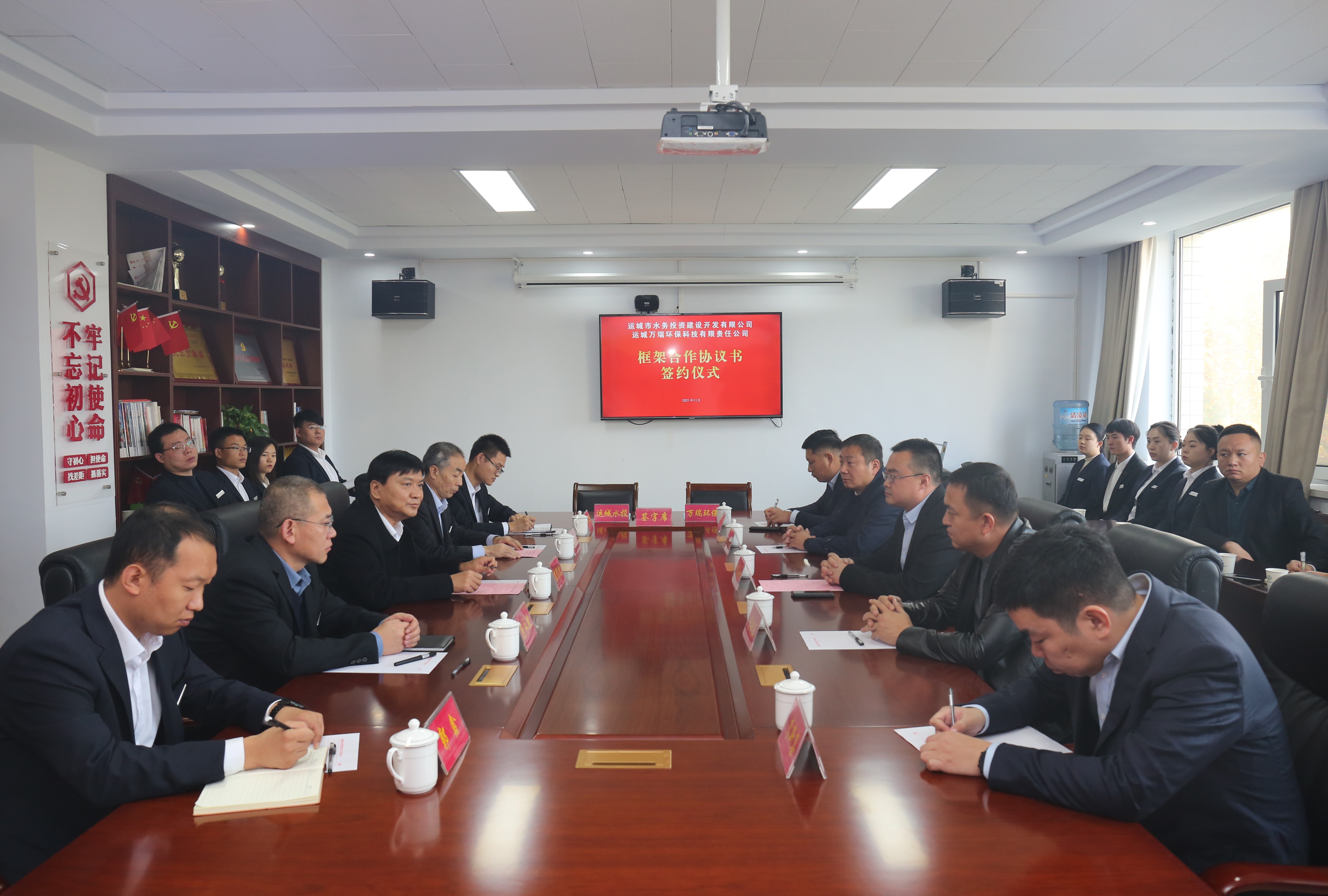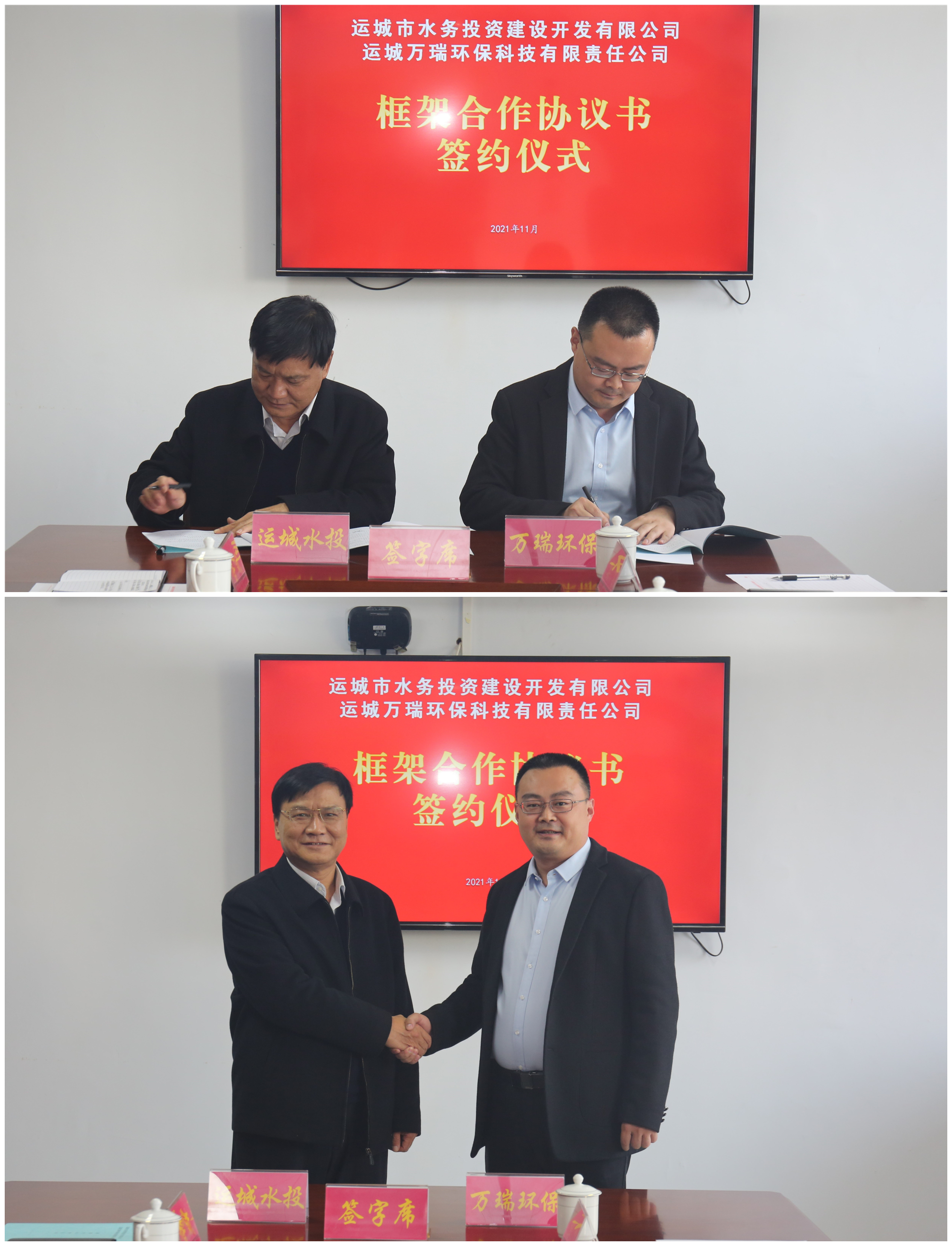 11月5日,運城市水務(wù)投資建設(shè)開發(fā)有限公司(以下簡稱市水投公司)與運城萬瑞環(huán)??萍加邢挢熑喂荆ㄒ韵潞喎Q萬瑞環(huán)保公司)框架合作協(xié)議簽約儀式,在市水投公司隆重舉行。