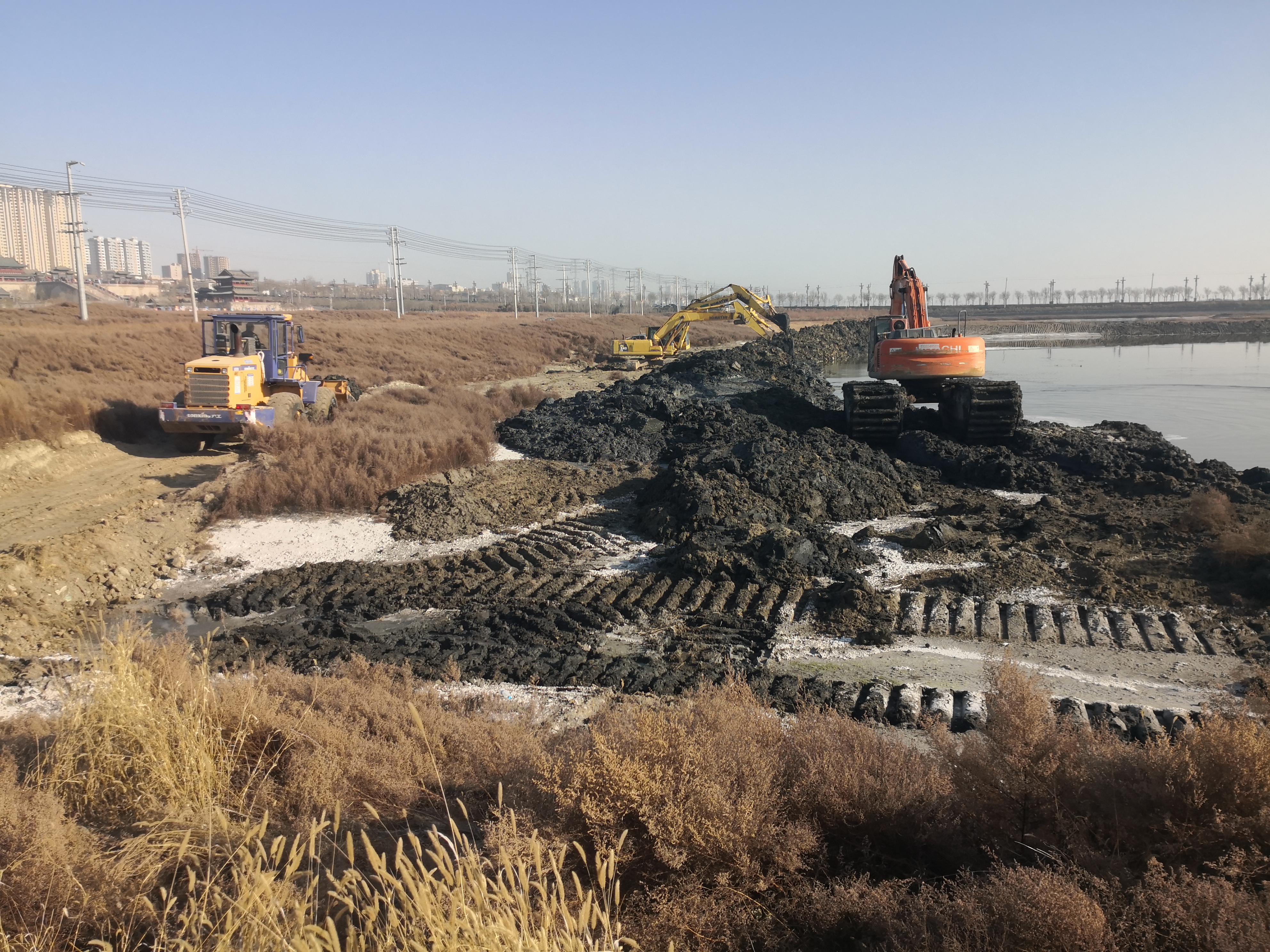 寒潮來襲,氣溫驟降,在當前疫情防控取得階段性重要成效的情況下,我公司所承建的鹽湖堤埝除險加固及生態(tài)修復工程(二期)迅速復工復產,呈現出提速推進的態(tài)勢。