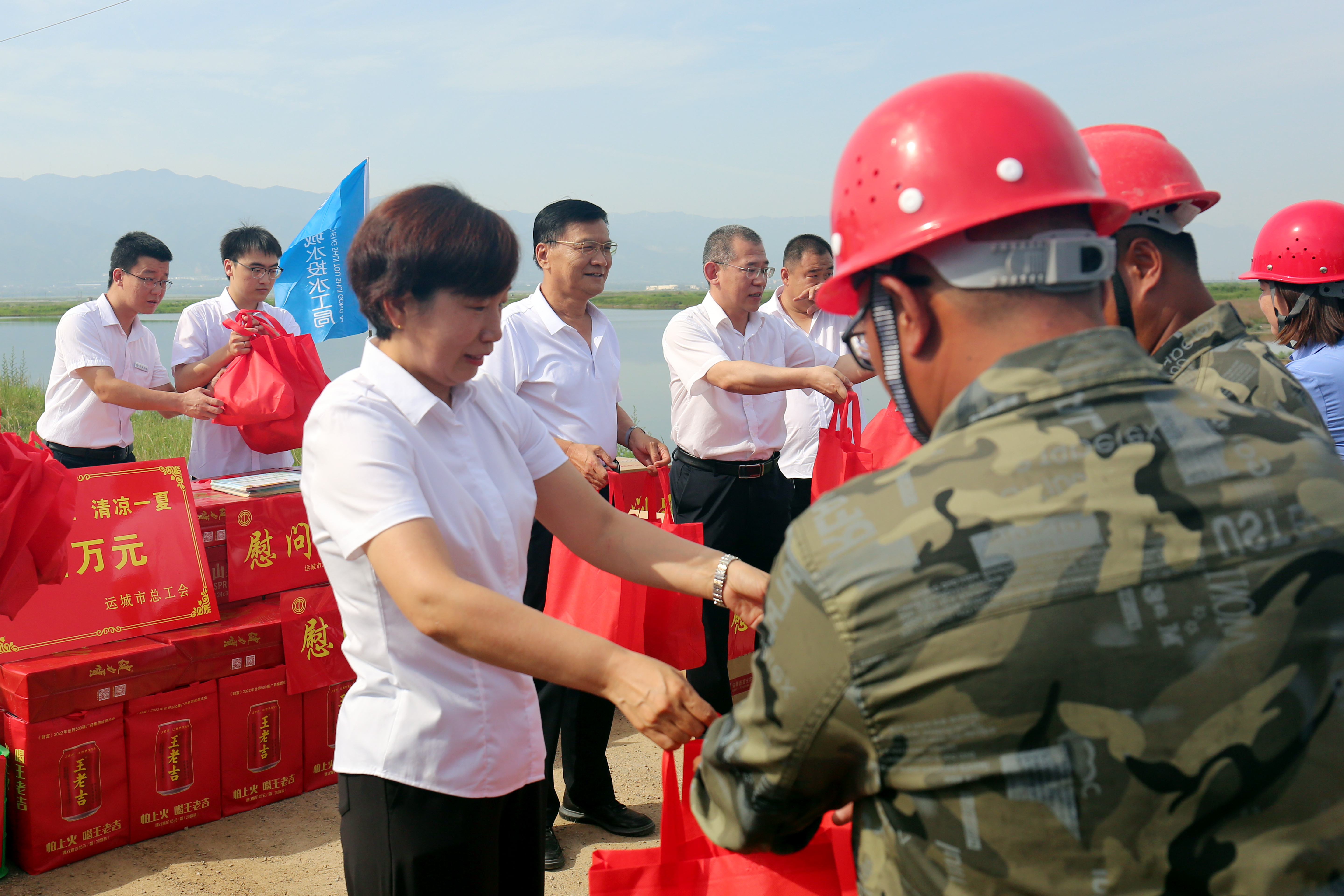 慰問現(xiàn)場(chǎng),公司黨委書記、董事長(zhǎng)崔作銘,黨委副總經(jīng)理、工會(huì)主席范永勝,副總經(jīng)理、鹽湖堤埝項(xiàng)目負(fù)責(zé)人楊素平為一線職工發(fā)放西瓜、飲料、礦泉水、清涼大禮包”,把絲絲清涼送到了施工一線。并叮囑大家做好防暑降溫,科學(xué)安排休息時(shí)間,勞逸結(jié)合,牢記領(lǐng)袖囑托,堅(jiān)決扛起鹽湖生態(tài)環(huán)境治理和保護(hù)的責(zé)任。