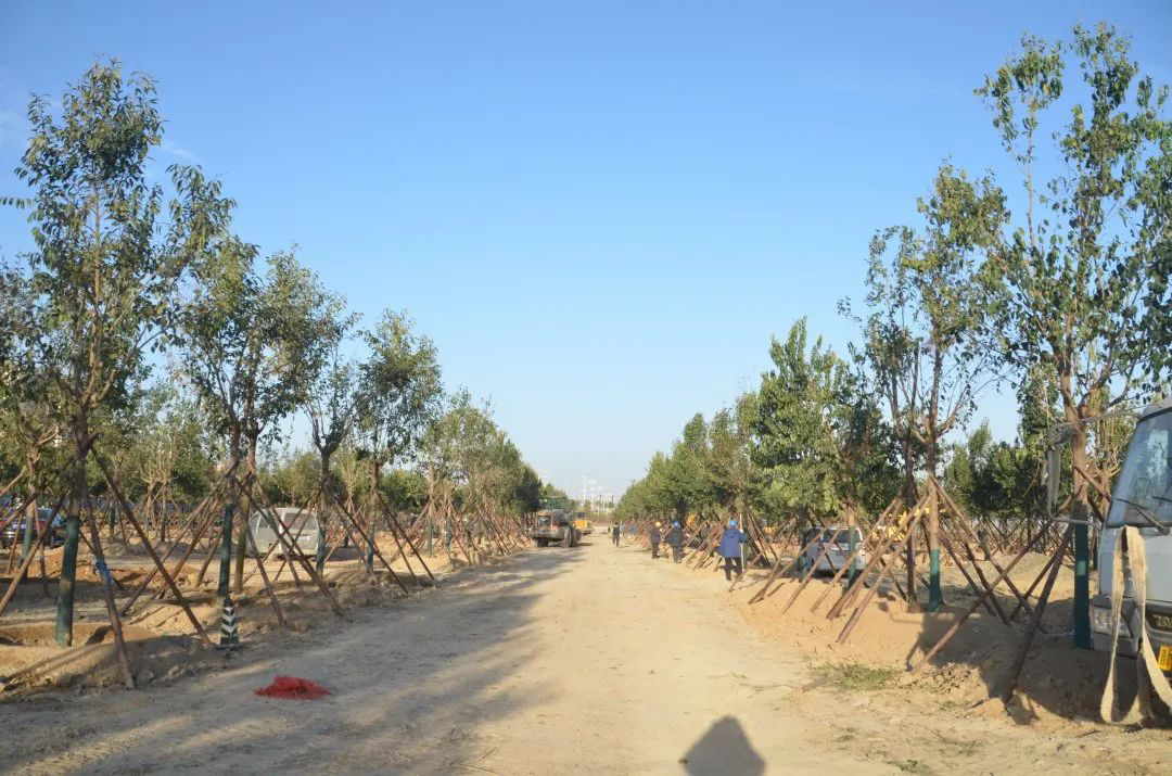 施工現(xiàn)場,大型機(jī)械集中作業(yè),挖掘機(jī)、裝載機(jī)、吊裝機(jī)和運輸車來回穿梭,九十余名工人辛勤勞作,相互配合,干勁十足,按設(shè)計規(guī)定放線挖坑、吊裝樹木、培土壓實,防護(hù)林建設(shè)有序進(jìn)行。栽植過程中,多次討論研究,結(jié)合鹽池生態(tài)環(huán)境,統(tǒng)籌考慮,因地制宜選擇當(dāng)?shù)卦灾矘浞N,目前已種植國槐、榆樹、大葉女貞、紅葉石楠、大葉黃楊、金森女貞、麥冬等各類喬灌木草種共計700余株,綠化種植面積2萬多平米,綠化建設(shè)將進(jìn)一步對鹽湖北側(cè)岸帶生態(tài)系統(tǒng)起到很好的防護(hù)作用。