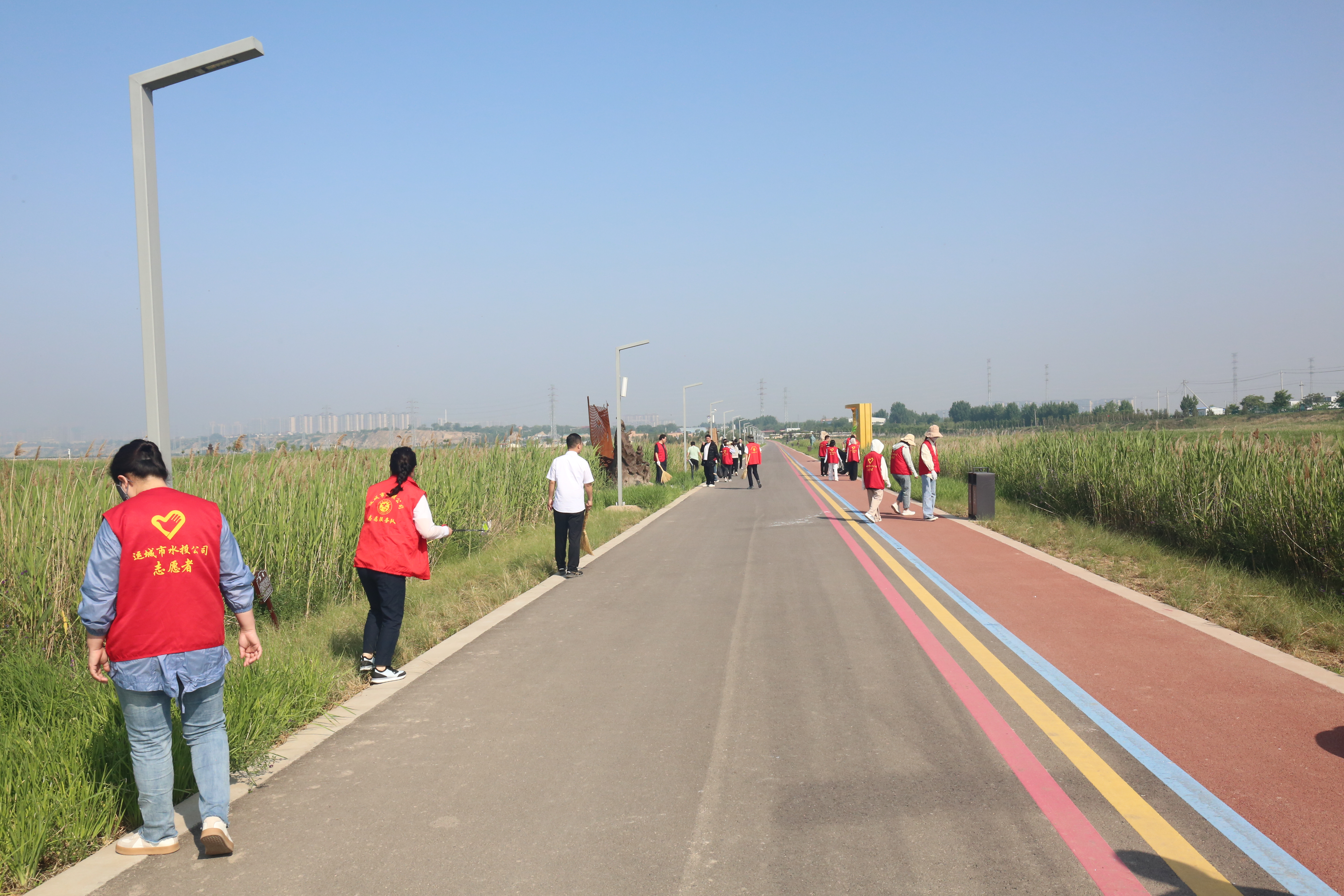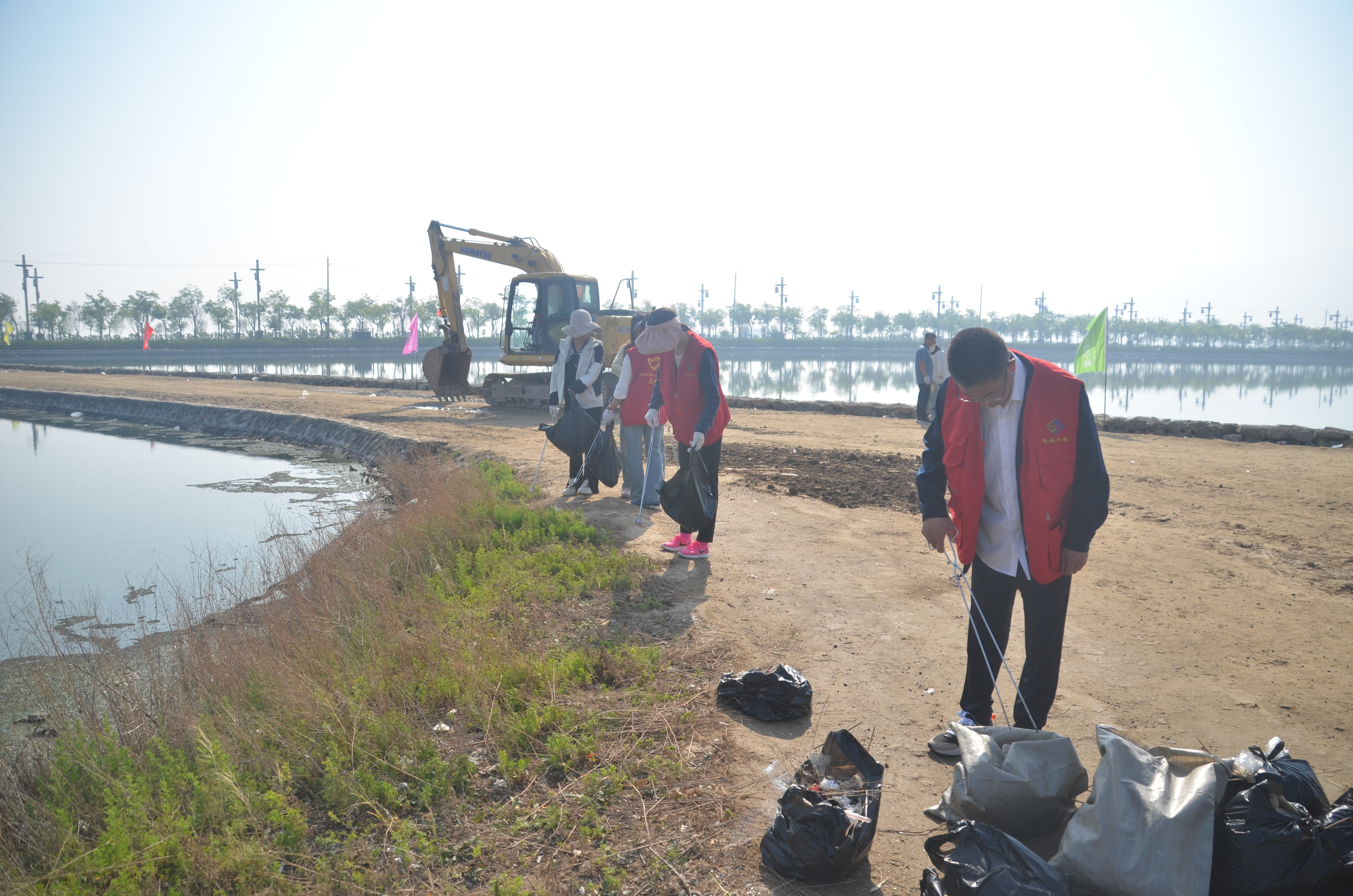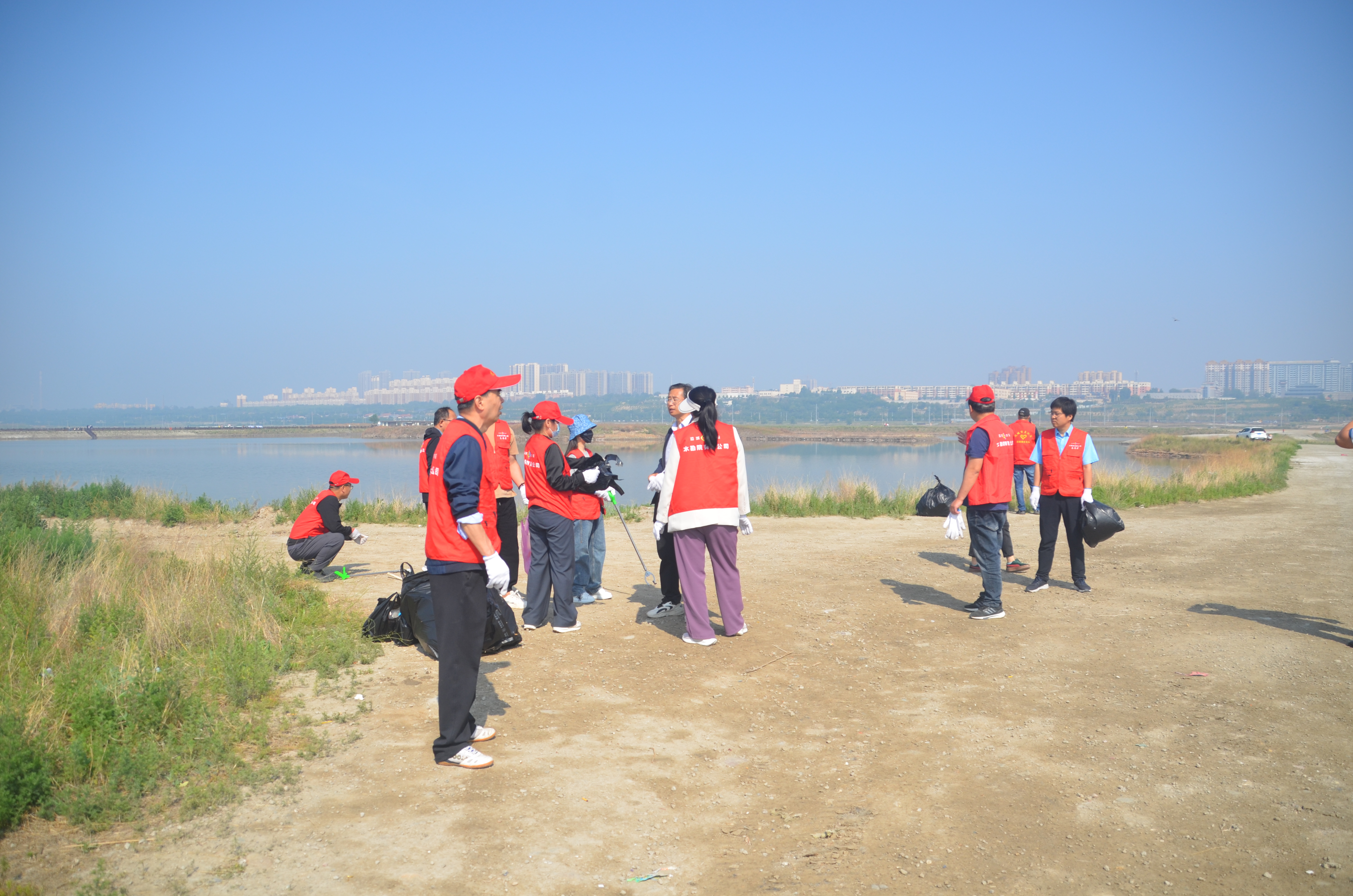 本次活動(dòng),我公司對(duì)成語(yǔ)典故園及鹽湖22號(hào)堤埝周邊水面、濕地、道路、護(hù)坡、邊坡等區(qū)域的垃圾、水面漂浮物進(jìn)行集中整治清理。