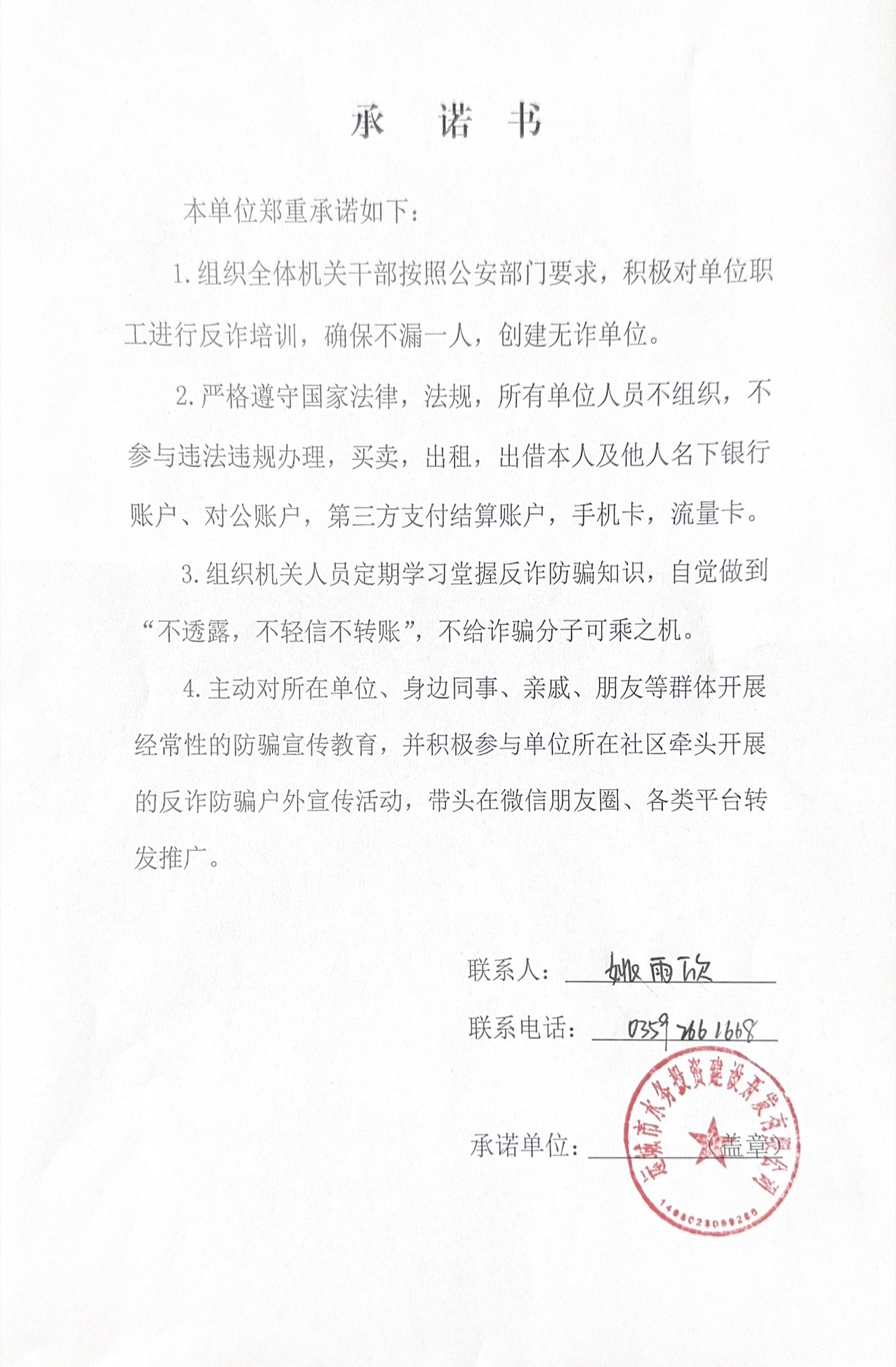 運城水投公司反詐承諾書